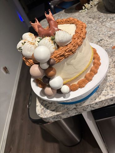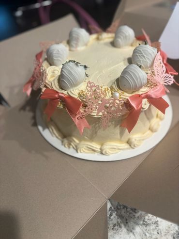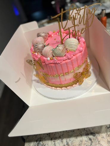 Customizable 3 layer round cakes that are customizable for any occasion! The starting price is for a basic design and includes a standard topper. Additional cake layers are $10 each, and edible images add $20 to the overall price. Dipped treats are an additional $15. Additional charges may occur based on the design.