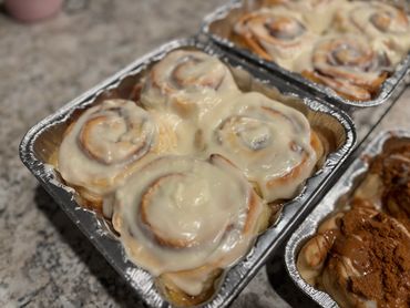 Gooey Cinnamon Rolls made from with love! Only available by the dozen.