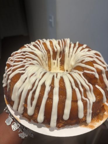 Simplicity at it‘s finest! This classic cream cheese poundcake is the perfect sweet treat! Finished with a vanilla glaze! Upgrade to cream cheese glaze for an additional $7!!